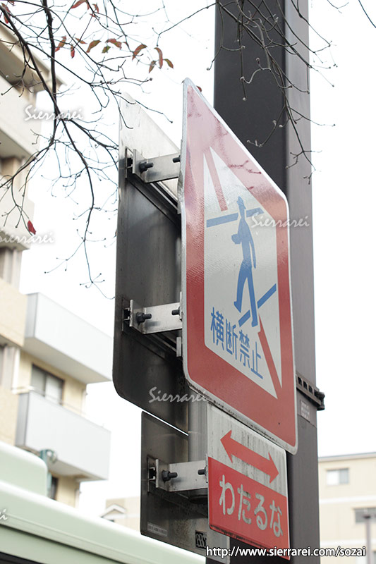 キーワード:横断禁止、標識、金具、止め金、写真素材