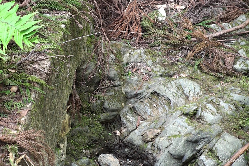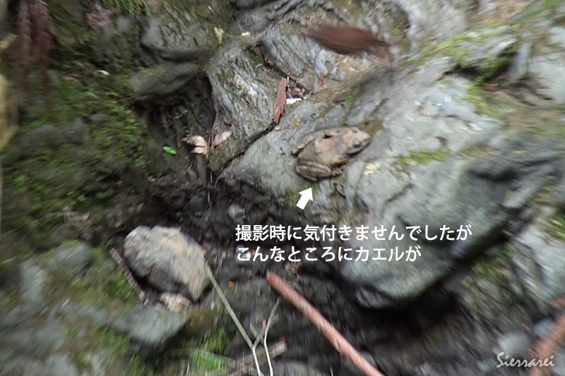 撮っているときは気付かなかったのですが、カエルも写ってたんです。岩の色に見事に同化しています。