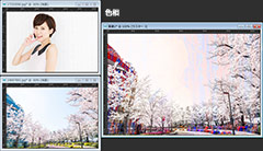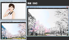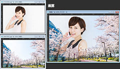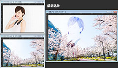 最初に紹介してある画像は、桜の画像の上に女性の画像を重ねてブレンドモードを「乗算」にしただけです。女性の部分だけを切り抜いたり、マスクを掛けたりすることなく自然な感じでなじんでいると思います。