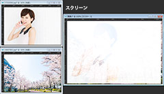 選択したレイヤーの色を下位のレイヤーと組み合わせてより暗い色を作ります。どんな色でも黒色と乗算した場合は黒色ができあがります。また、白色と乗算した場合は色は変わりません。このブレンド モードでは、[レイヤー] パレット上のレイヤーの並びが変わっても結果は変わりません。
