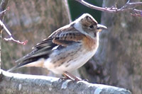 摂津峡で撮影したアトリ。時間帯は昼過ぎ、のんびりと枝の上から辺りを様子見。